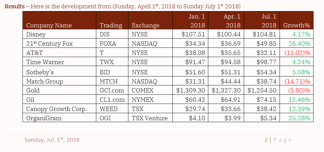 Ø Disney – ups its bid for 20th Century Fox, to 71B USD, to edge out ComCast’s bid