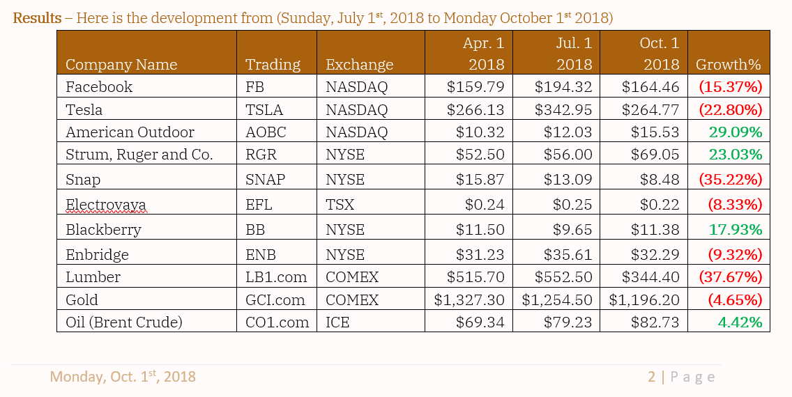 Ø Double Down – The results from last issue suggestions, reveal the continued risk with Snap, Electrovaya and Enbridge which drop still, only Blackberry rose back to earlier year numbers.