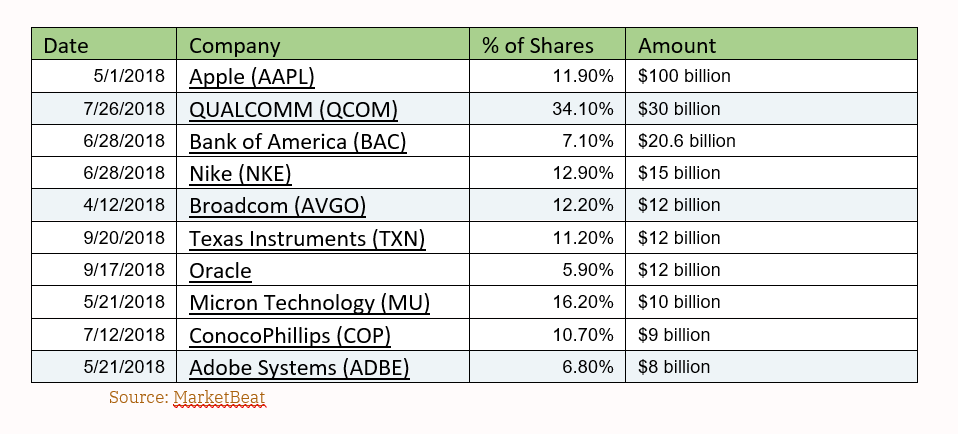 This last quarter, Berkshire Hathaway released their limits on their own buy back limits from 4B, and with 100B in their war chest – this could reflect a new investment strategy. One big news story last Quarter, was Apple’s evaluation peaking at 1 Trillion USD – this was closely tied to their extensive stock buybacks.