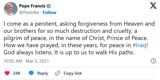 When Pope Francis came to the head of the Catholic Church, the reputation was in need of change, as lawsuits and acts of abuse of power headlined the news. Pope Francis came with open arms, as he embraced the LGBTQ+ community, acknowledged the role of science and its interplay with religion, and ultimately bringing the Church back to its roots of kindness and forgiveness. This has led the Pope outspoken position on peace, and calls to bring conflicts in the world to an end by better focusing energy on the root causes of conflict, poverty and injustice.
